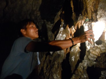 Inside, illuminated by flashlight, my guide Romnick pointed out the rock formations as he paddled. He was especially fond of the ones that resembled people or objects most people would recognize. A banana. A dinosaur. The Virgin Mary. A big round turd.