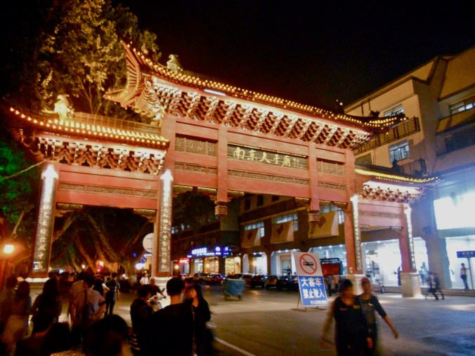 I stayed at the Crystal Orange Hotel, a couple blocks from the Confucius Temple area. The neighborhood is one of Nanjing’s most popular tourist destinations, with markets, restaurants and bars. At night, red lanterns and orange lights atop the temple’s many arches give the busy streets a pinkish glow.