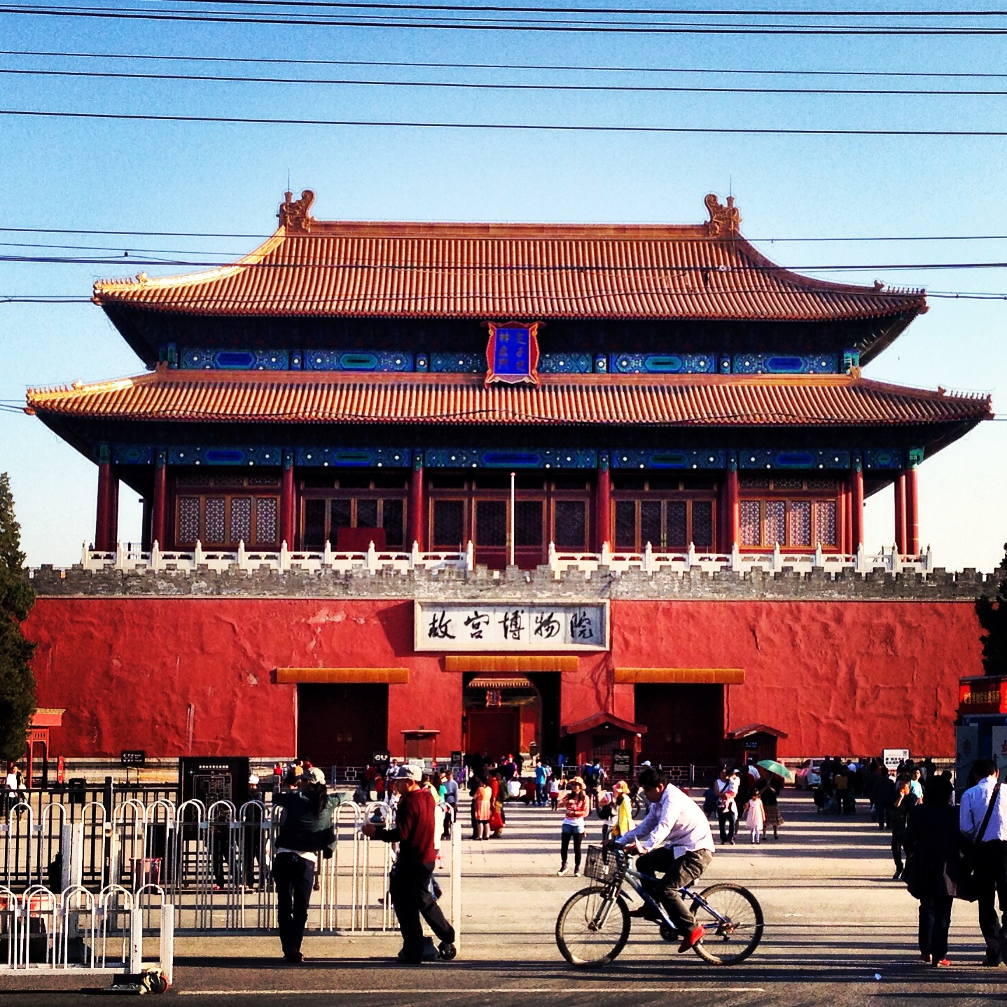 Last Tuesday was one of those clear days. I rode my bike to the Forbidden City and parked near the northeastern corner. I walked to the edge of the moat, where around a dozen people with expensive-looking cameras mounted on tripods were watching the sun set. The sky turned a yellowish orange, and the shadows over the water grew darker until their colors disappeared.