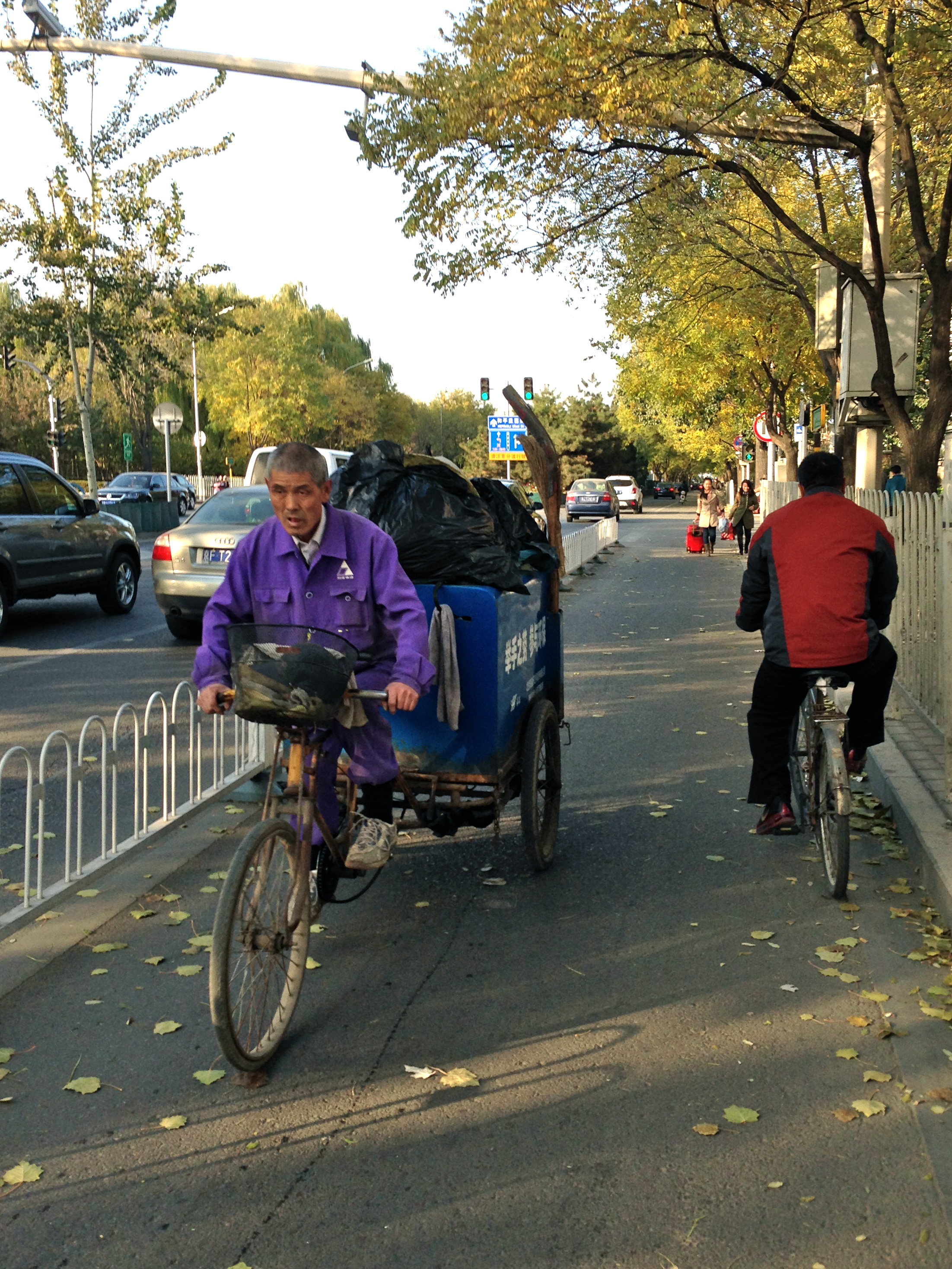A trash collector near Ditan Park in Beijing. An increase in the cost of living in Chinese cities is making it harder for the average worker to get by.