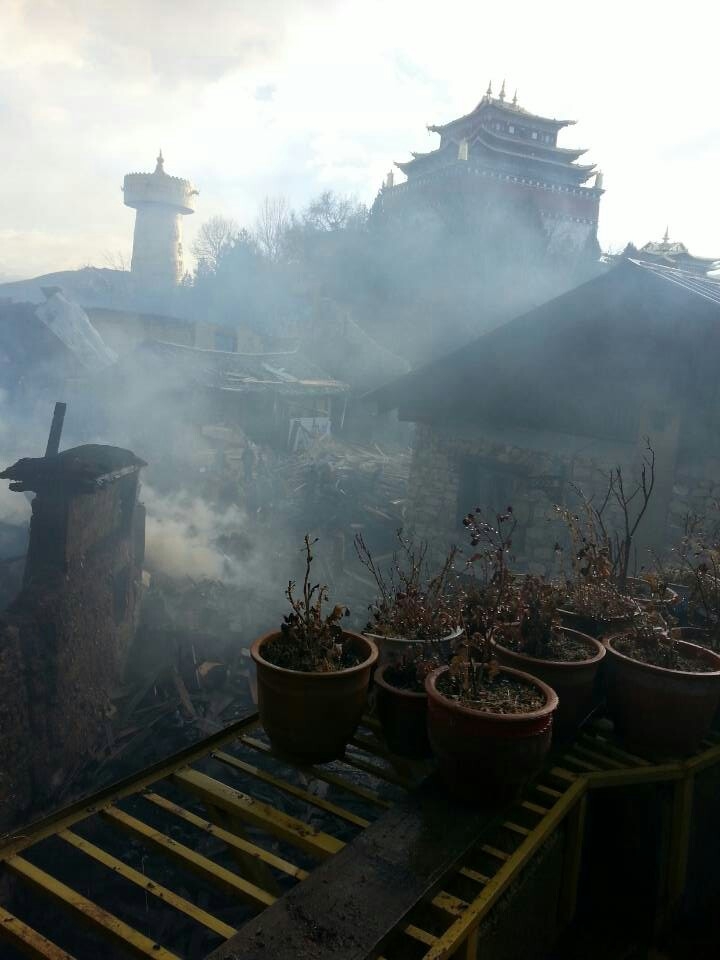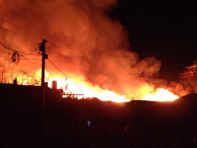 The fire on Saturday in Dukezong burned for more than 10 hours, state media reported. (Photo courtesy of Matthieu Lelievre)