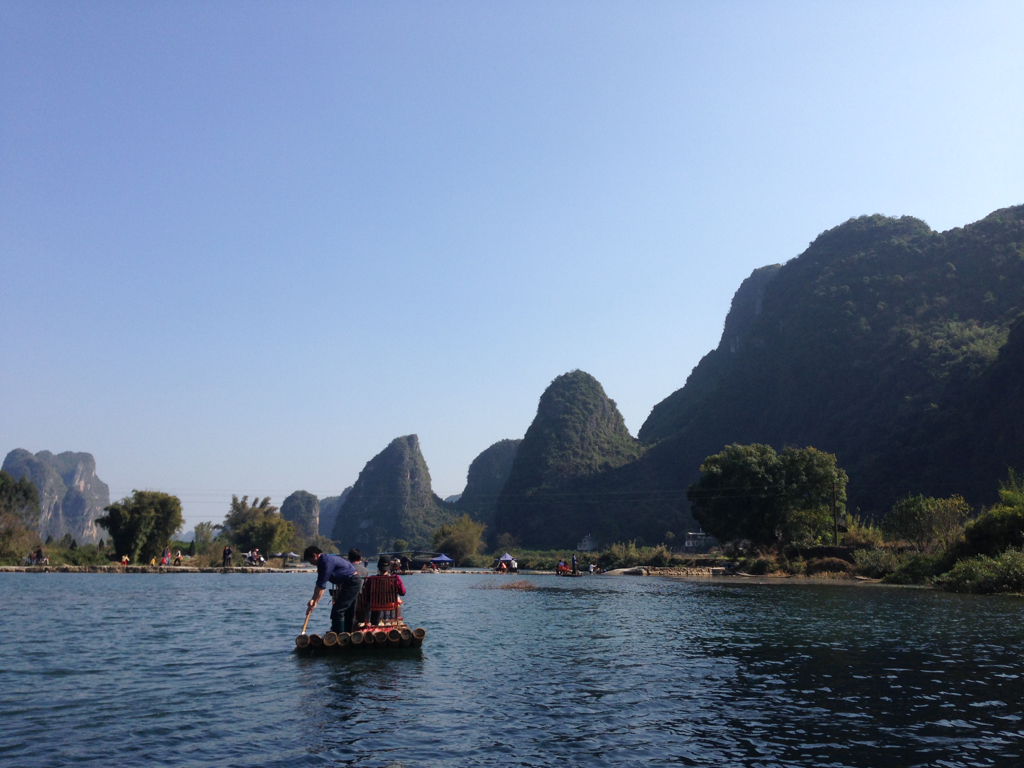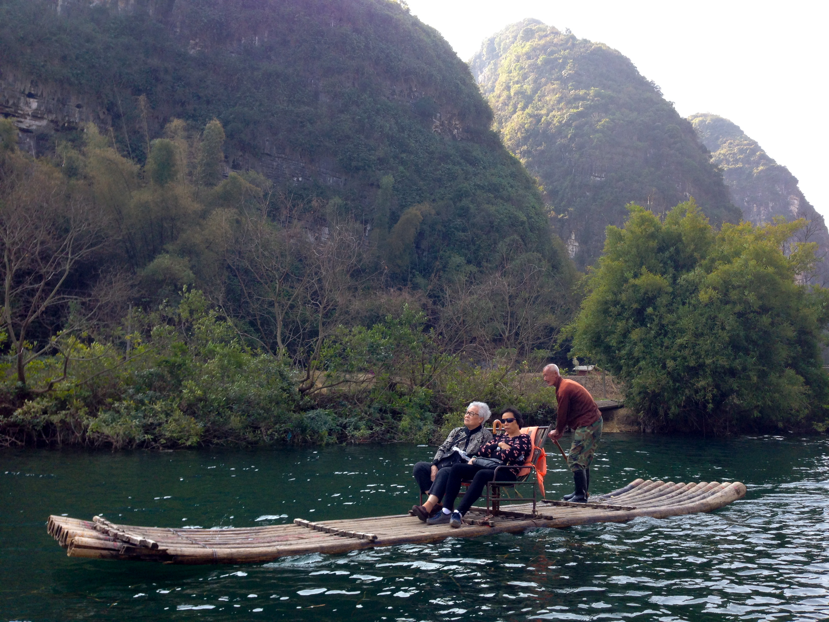 When I arrived at my hotel in Yangshuo, I checked my luggage to make sure I didn’t forget anything. My girlfriend and I then took a taxi to the Yulong River (遇龙河), where a man surnamed Liu was waiting to take us for a ride on his bamboo raft.