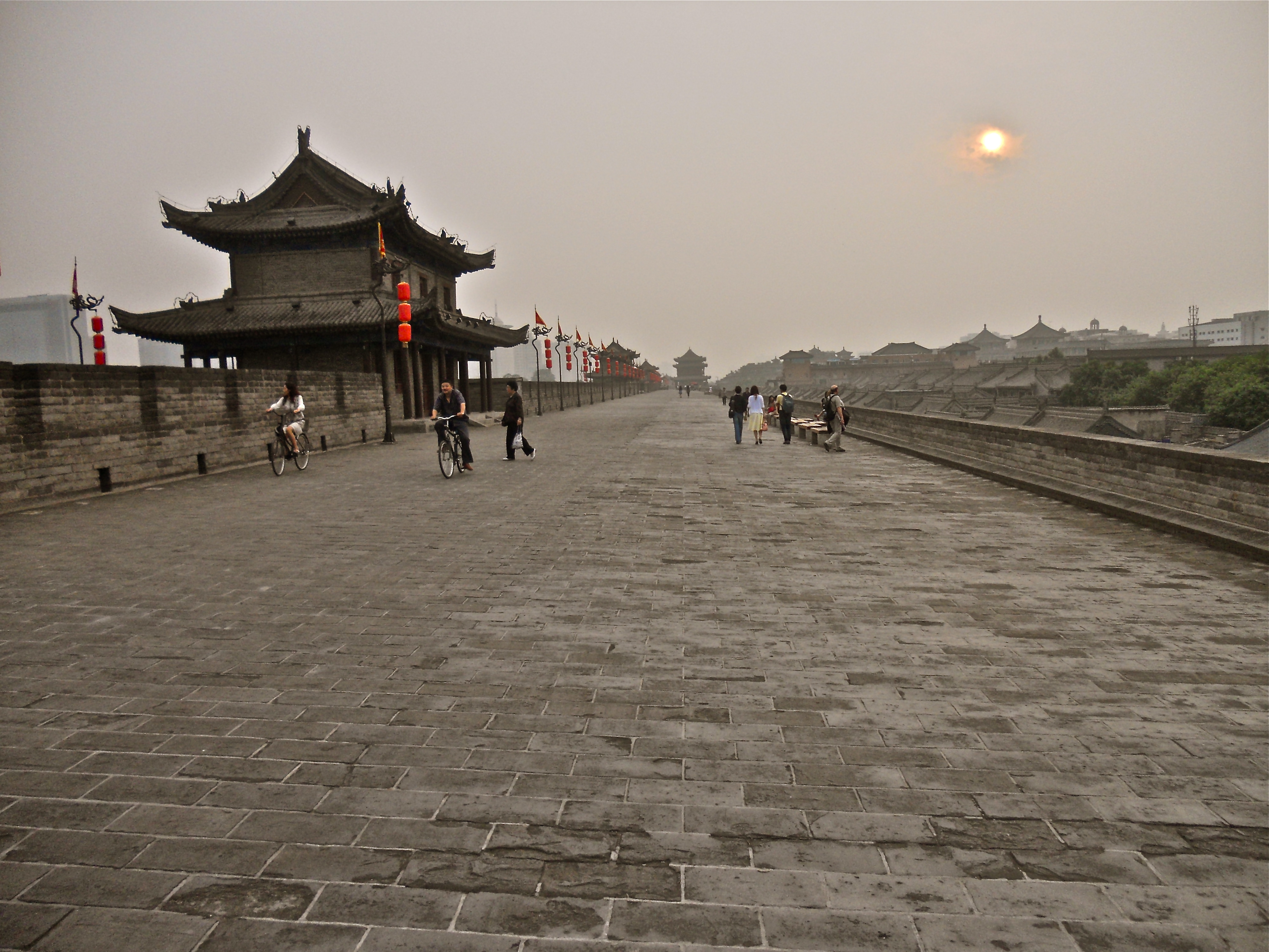 The towers where the first protectors of Xi’an patrolled in the 14th century are today home to merchants peddling cheap souvenirs and renting bikes to tourists. There is no view of the horizon anymore, thanks to scores of high-rise apartment buildings and air pollution from factories. The silence is gone too, as cars and buses lined bumper-to-bumper rumble through the wall’s gates all hours of the day, entering the heart of a growing city with a population of already 8 million.